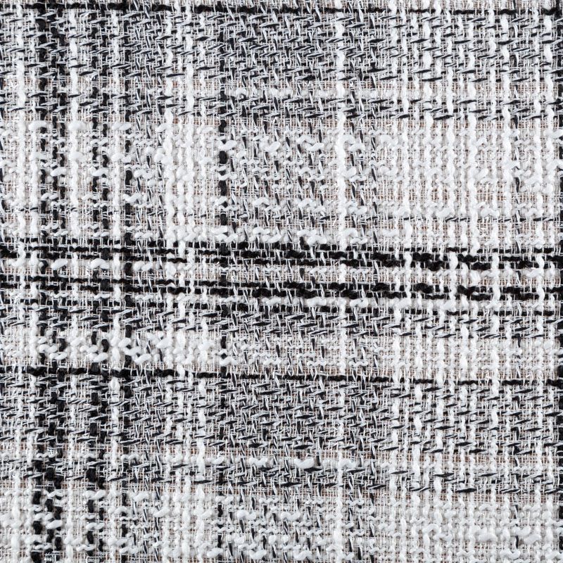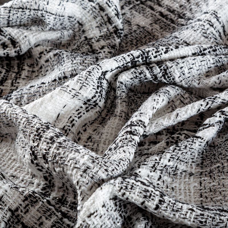 Мягкая, пластичная и объемная ткань, с разреженной и рельефной вывязанной структурой. Буклированный твид в стиле Шанель буквально соткан из различных по толщине и текстуре нитей, образующих рисунок в виде клетки. В плетение добавлена блестящая люрексная нить. Твид идеально подходит для пошива платьев, юбок, жакетов, легких пальто, эффектных бомберов и курток.