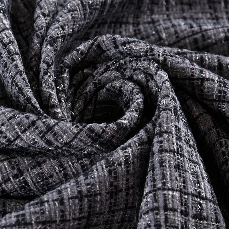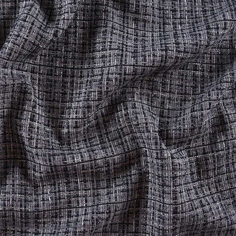 Мягкая, пластичная и объемная ткань, с разреженной и рельефной вывязанной структурой. Буклированный твид в стиле Шанель буквально соткан из различных по толщине и текстуре нитей, образующих рисунок в виде клетки. В плетение добавлена блестящая люрексная нить. Твид идеально подходит для пошива платьев, юбок, жакетов, легких пальто, эффектных бомберов и курток.