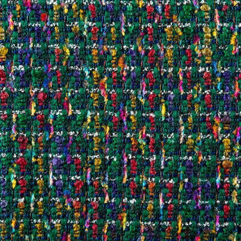 Переплетение разноцветных нитей делает эту ткань универсальной, и в тоже время оригинальной. Полотно плотное, но очень мягкое. Теплое, комфортное. Плетение не рыхлое, поверхность фактурная, поэтому изделия выглядят достаточно объемно. Подойдет для пошива костюмов с юбкой, жакетов, облегченных пальто.