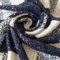 Твид молочного оттенка в крупную синюю клетку, украшенную серебряным люрексом. Ткань не толстая, мягкая, теплая и уютная, хорошо драпируется. Фактура с многочисленными узелками, очень приятная на ощупь. Можно использовать для пошива изделий классического кроя - юбки, жакеты, костюмы или пальто.