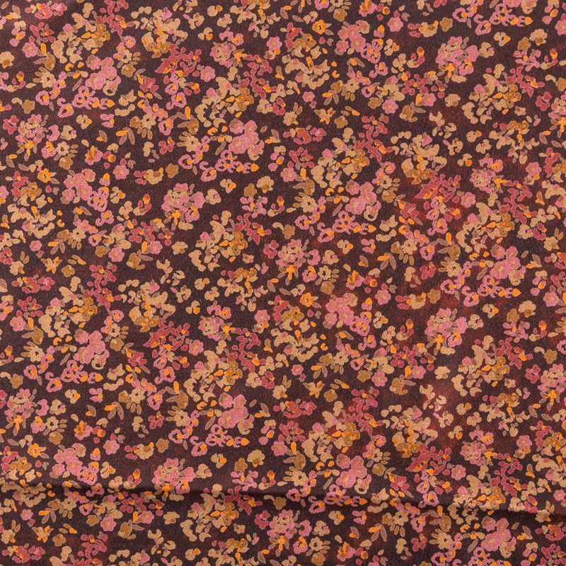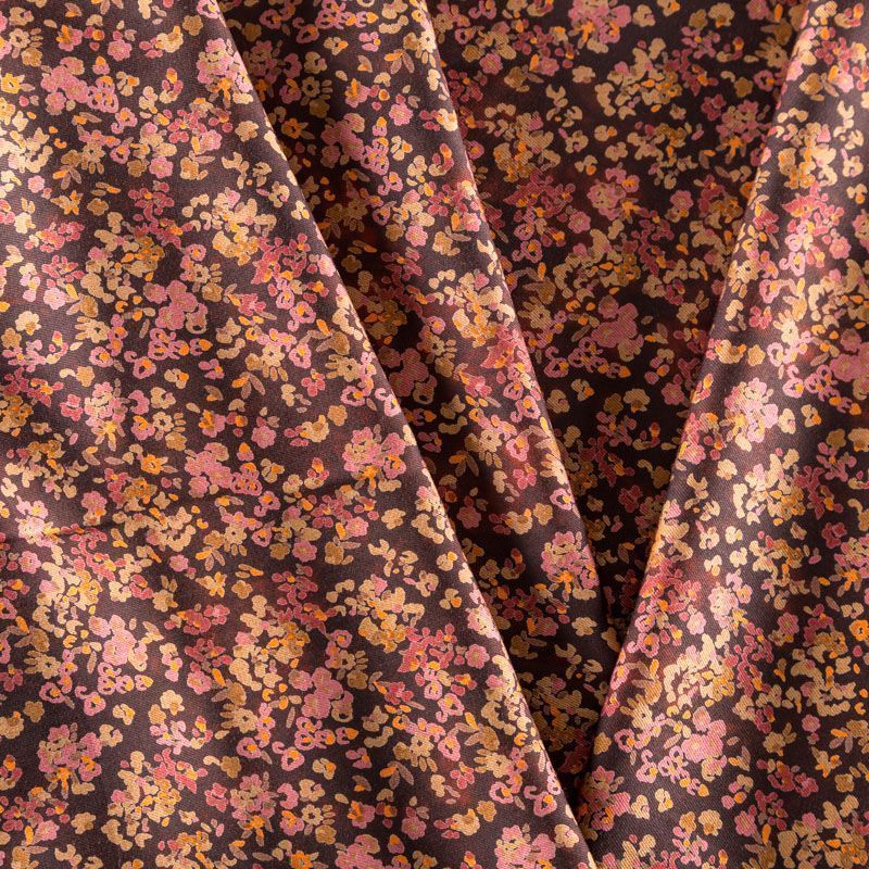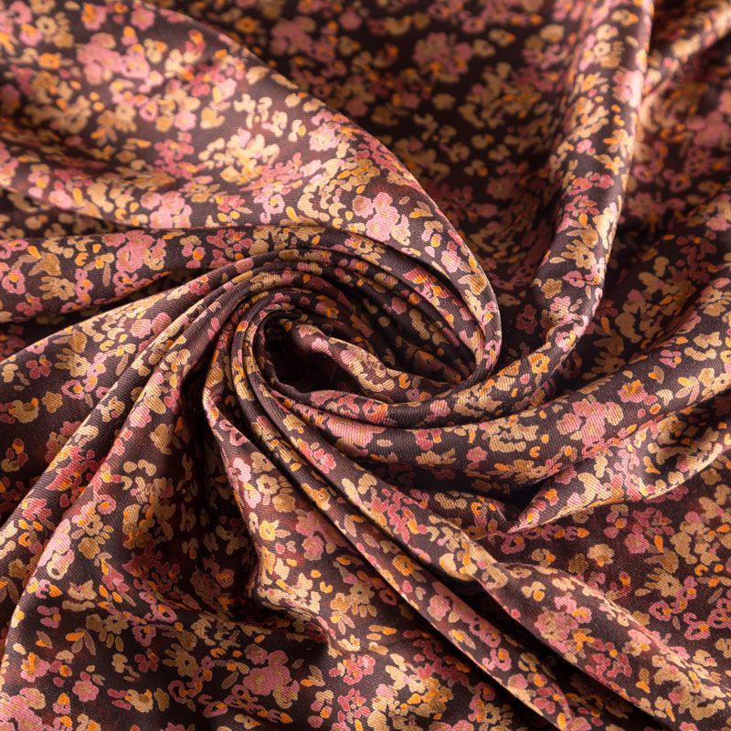 Плотная, мягкая и слегка шелковистая ткань, имеет саржевое плетение и характерный диагональный рубчик на поверхности. Отлично сохраняет форму, не сильно мнется и не деформируется в процессе эксплуатации. Красиво ложится в складки и струится, поэтому прекрасно подойдет на длинные драпированные юбки и платья, на свободные брюки или шорты, топы.