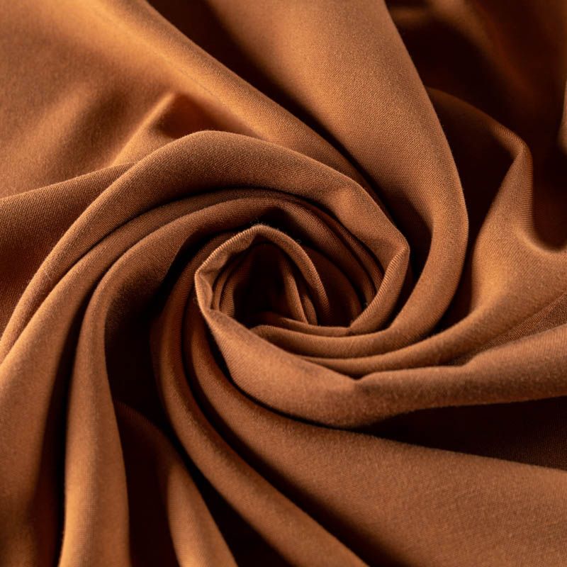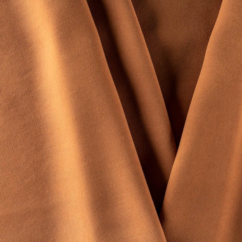 Мягкая ткань средней плотности, имеет саржевое плетение и характерный диагональный рубчик на поверхности. Отлично сохраняет форму, не сильно мнется и не деформируется в процессе эксплуатации. Красиво ложится в складки, поэтому прекрасно подойдет на длинные драпированные юбки и платья, на свободные брюки или шорты, топы.