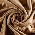 Итальянский хлопковый вельвет костюмно-плательной плотности коричневого оттенка. Ткань имеет матовую фактурную поверхность в рубчик средней ширины, ворс короткий, мягкий и приятный на ощупь. Тянется за счет эластана в составе, хорошо драпируется и держит форму. Прекрасный вариант для пошива костюма, юбки, широких брюк, шорт, комбинезона, жакета, куртки или тренча.