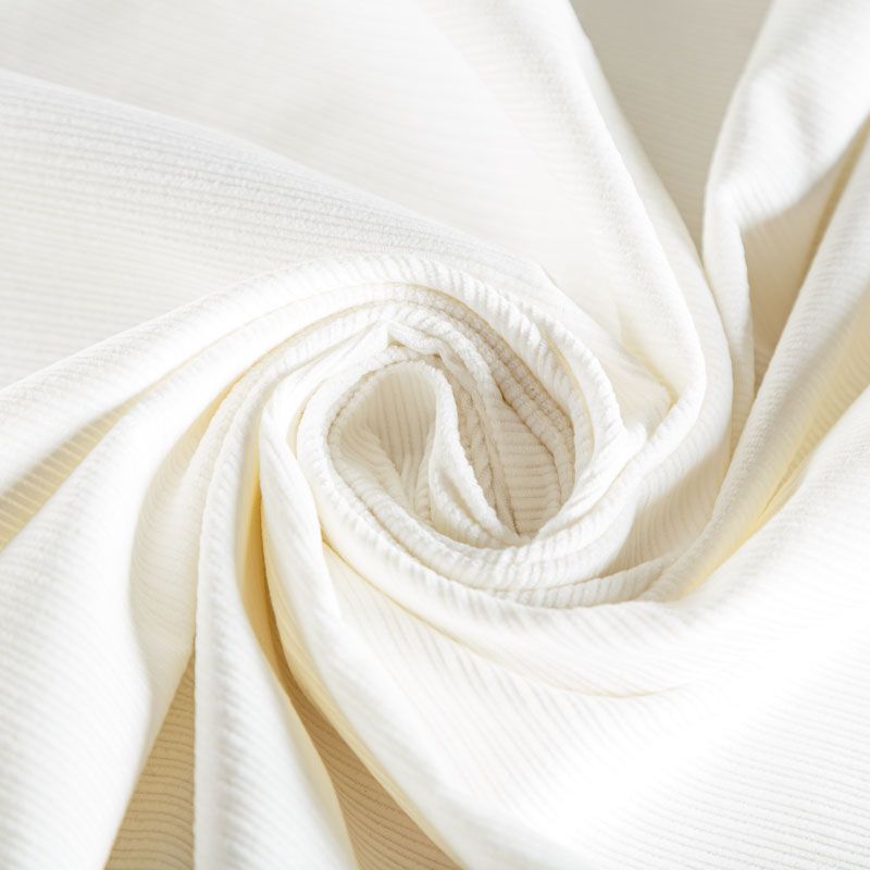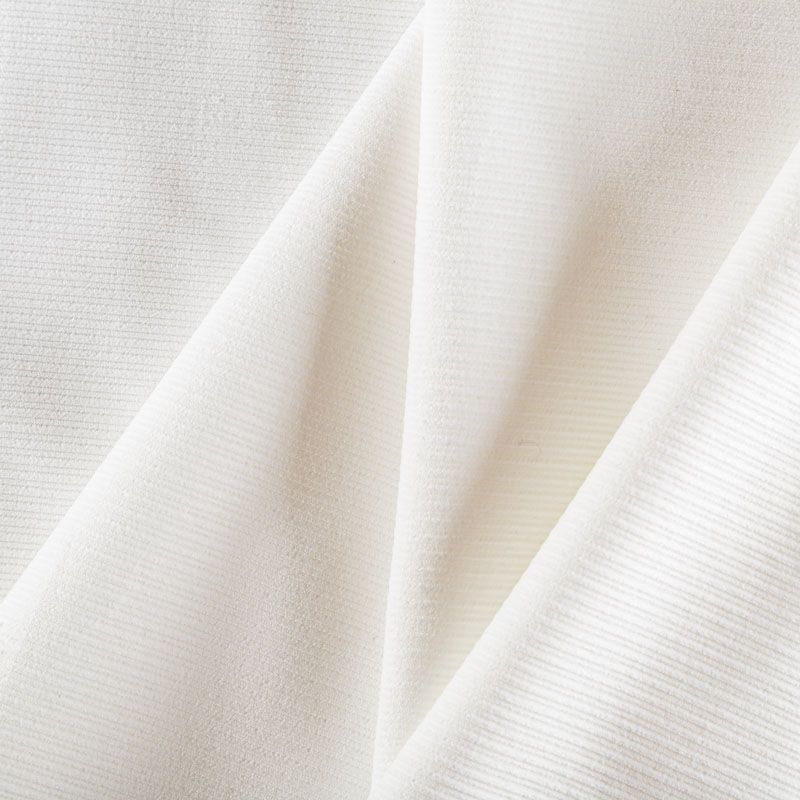 Итальянский хлопковый вельвет костюмно-плательной плотности в молочном оттенке. Ткань имеет матовую фактурную поверхность в разноразмерный чередующийся рубчик, ворс короткий, мягкий и приятный на ощупь. Тянется за счет эластана в составе, хорошо драпируется и держит форму. Прекрасный вариант для пошива костюма, юбки, широких брюк, шорт, комбинезона, жакета, куртки или тренча.