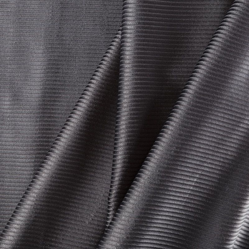 Итальянский хлопковый вельвет костюмно-плательной плотности темно-серого оттенка. Ткань имеет матовую фактурную поверхность в рубчик средней ширины, ворс короткий, мягкий и приятный на ощупь. Тянется за счет эластана в составе, хорошо драпируется и держит форму. Прекрасный вариант для пошива костюма, юбки, широких брюк, шорт, комбинезона, жакета, куртки или тренча.