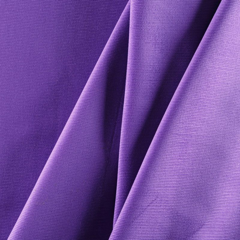 Итальянский хлопковый вельвет костюмно-плательной плотности фиолетового оттенка. Ткань имеет матовую фактурную поверхность в тонкий рубчик, ворс короткий, мягкий и приятный на ощупь. Хорошо драпируется и держит форму. Прекрасный вариант для пошива костюма, юбки, широких брюк, шорт, комбинезона, жакета, куртки или тренча.