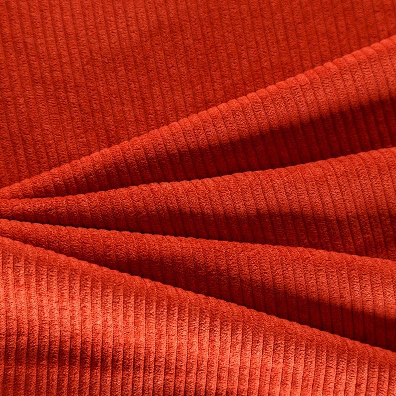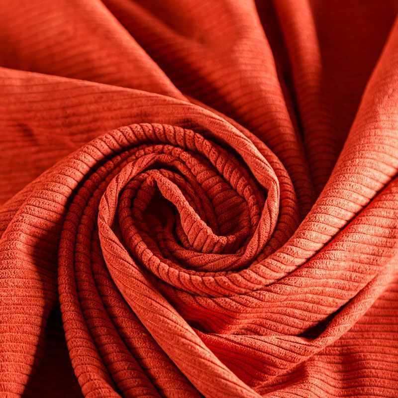 Плательно-костюмный вельвет средней плотности, но удивительно мягкий с матовым блеском и бархатистой поверхностью. За счет вытравки ворса лицевая сторона фактурная, в рубчик средней толщины. Ткань очень пластичная, хорошо и мягко драпируется, не мнется. Прекрасно подходит для пошива костюмов, жакетов, платьев, юбок, брюк, шорт, а также для изготовления даже детской одежды.