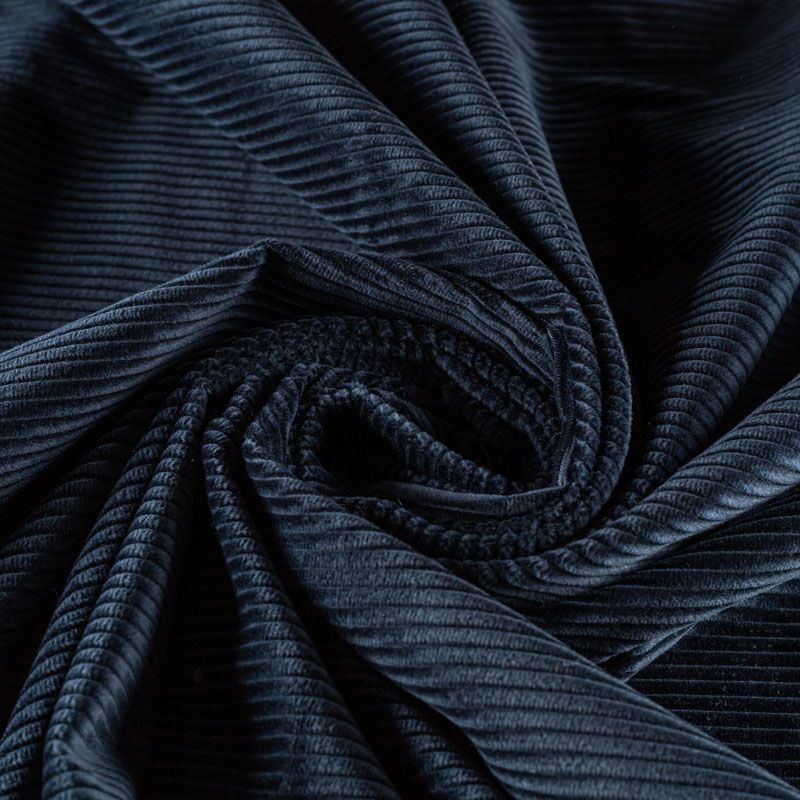 Итальянский костюмно-плательный вельвет из хлопка в темно-синем оттенке. Очень приятный тактильно, поверхность бархатистая в средний рубчик, немного тянется, не просвечивает. Подойдет для пошива костюма, жакета, платья, сарафана, юбки или брюк.