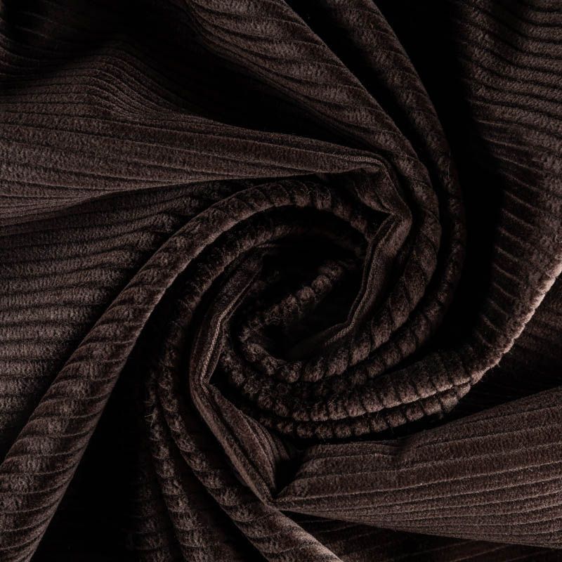 Итальянский костюмно-плательный вельвет из хлопка в благородном цвете горького шоколада. Очень приятный тактильно, поверхность бархатистая, рубчик средней ширины, не тянется, не просвечивает. Подойдет для пошива костюма, платья, юбки, брюк.