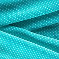 Плательно-рубашечная итальянская вискоза бирюзового оттенка с принтом в мелкий горошек. Натуральная, дышащая ткань, очень приятная к телу, отлично драпируется, струится, не просвечивает. Хорошо подойдет для пошива платьев, рубашек, платьев-рубашек, блуз, юбок, брюк, летних костюмов, пыльников, детской одежды.