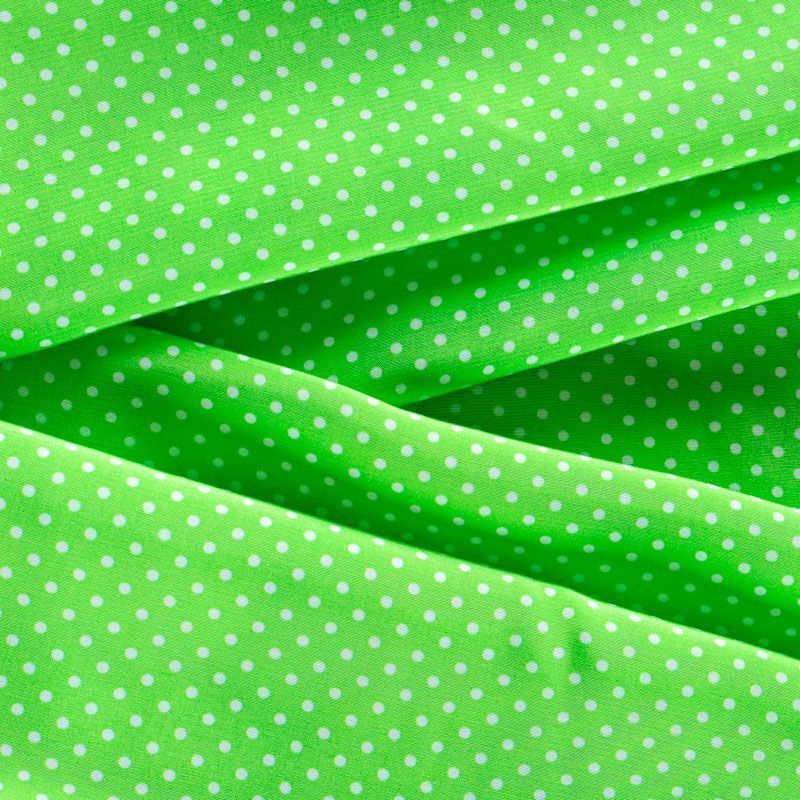 Плательно-рубашечная итальянская вискоза яркого салатового оттенка с принтом в мелкий горошек. Натуральная, дышащая ткань, очень приятная к телу, отлично драпируется, струится, не просвечивает. Хорошо подойдет для пошива платьев, рубашек, платьев-рубашек, блуз, юбок, брюк, летних костюмов, пыльников, детской одежды.