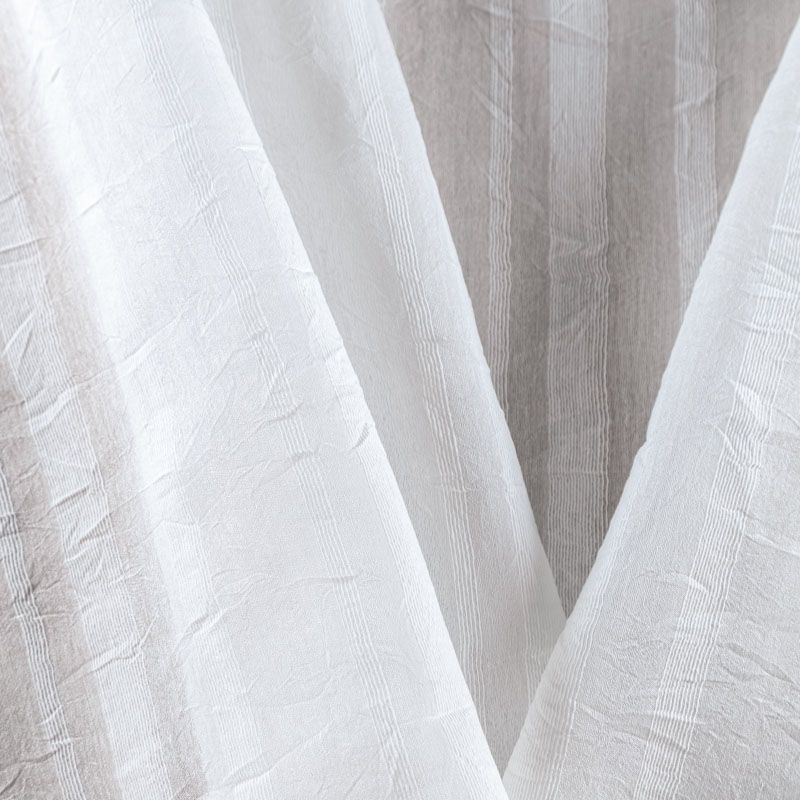 Итальянская плательно-блузочная вискоза с полупрозрачными горизонтальными полосками из органзы молочного оттенка. Ткань очень легкая, воздушная, хорошо драпируется, приятная на ощупь, просвечивает, требуется подклад. Прекрасно подойдет для пошива платья, сарафана, рубашки, топа, блузки, юбки, летнего костюма.