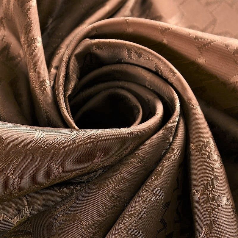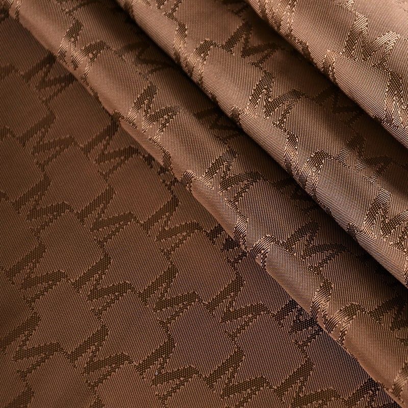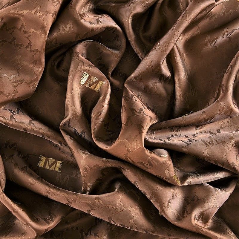 Итальянская плательно-блузочная вискоза с жаккардовой монограммой логотипа известного бренда на коричневом фоне. Ткань очень пластичная, отлично драпируется и струится, мягкая и приятная на ощупь, не просвечивает. Прекрасно подойдет для пошива платья, сарафана, рубашки, топа, блузки, юбки, летнего костюма.