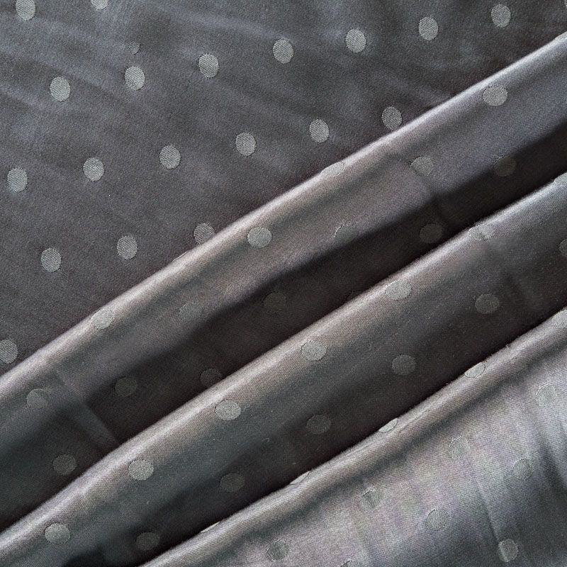 Атласная жаккардовая вискоза серого оттенка. Ткань плотная, но пластичная, хорошо драпируется и струится. Поверхность ткани гладкая, атласная, приятная на ощупь. Подойдет для пошива платья, сарафана, топа, блузки, рубашки, юбки, костюма в пижамном стиле, брюк свободного кроя, а также как подклад для верхней одежды.