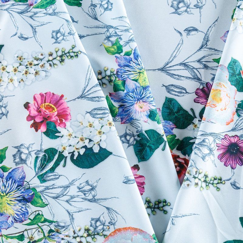 Это элегантная струящаяся ткань, которая превосходно драпируется, всегда изящно выглядит и остается легкой и воздушной,  имеет высокую прочность и большую износоустойчивость. Поверхность ткани матовая, гладкая и ровная, очень приятная на ощупь. Используется для пошива блуз, юбок, платьев, сарафанов, широких брюк.