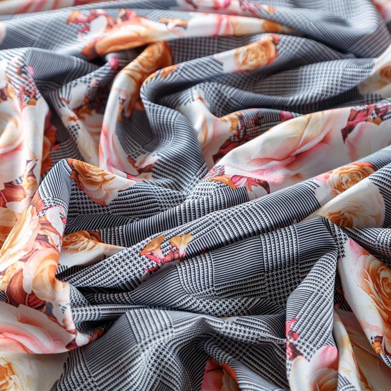 Это элегантная струящаяся ткань, которая превосходно драпируется, всегда изящно выглядит и остается легкой и воздушной,  имеет высокую прочность и большую износоустойчивость. Поверхность ткани матовая, гладкая и ровная, очень приятная на ощупь. Используется для пошива блуз, юбок, платьев, сарафанов, широких брюк.