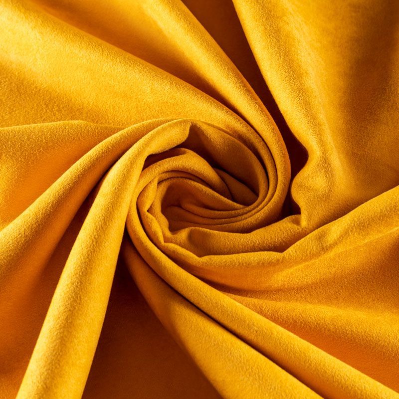 Ткань средней плотности с ворсистой и мягкой поверхностью, имитация замши. Практичная, износостойкая с высоким уровнем светонепроницаемости. Легко драпируется и держит заданную форму. Не сминается, быстро сохнет. Универсальная однотонная ткань, которая впишется в любой стиль интерьера в качестве портьер, римской шторы, скатерти, салфеток, декоративных чехлов, покрывал, подушек.