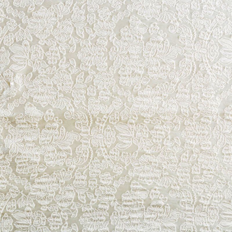 Итальянский жаккард молочного оттенка с изящным цветочным орнаметом. Ткань мягкая и пластичная, держит форму, хорошо драпируется. Повехность фактурная, матовая. Подойдет для создания вечерних  и свадебных платьев, нарядных костюмов, жакетов, юбок, корсетов, шорт.