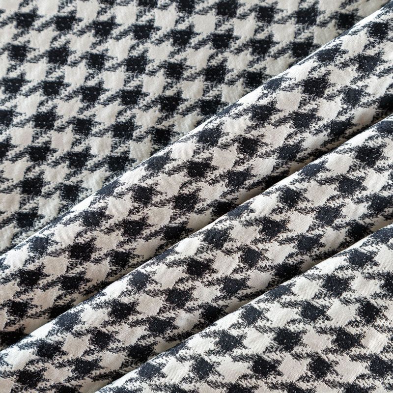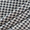 Итальянский костюмно-плательный жаккард в молочном оттенке с классическим дизайном гусиная лапка. Ткань плотная, поверхность матовая, слегка фактурная за счет плетения, хорошо драпируется и держит форму, тянется за счет эластана в составе, не просвечивает. Подойдет для пошива брючного костюма, платьев, жакетов, легких пальто, бомберов, юбок или шорт.