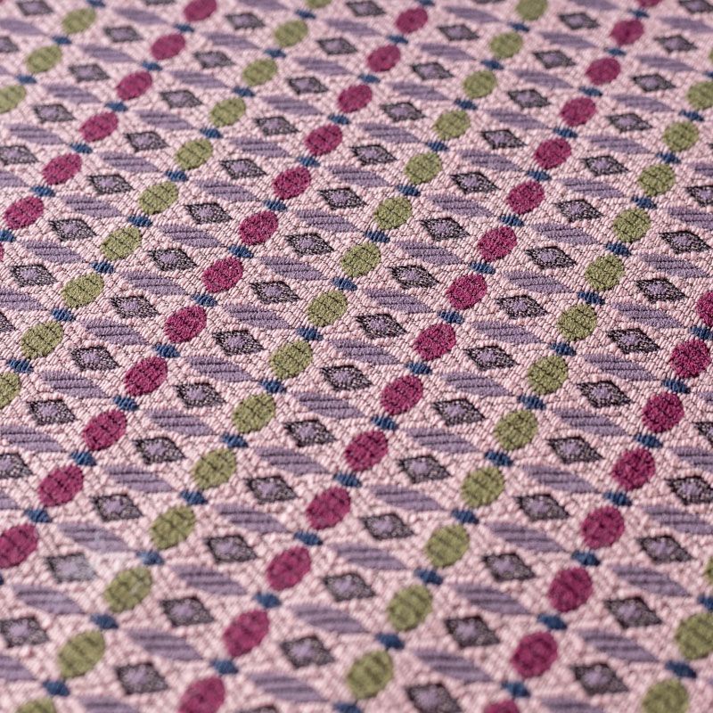 Мягкий хлопковый жаккард в розовом оттенке с мелким абстрактным узором. Ткань пластичная, непрозрачная, приятная на ощупь, тянется за счет эластана в составе, форму не держит, но хорошо драпируется красивыми складками. Будет комфортна для пошива костюма, женственного платья, юбки или брюк.